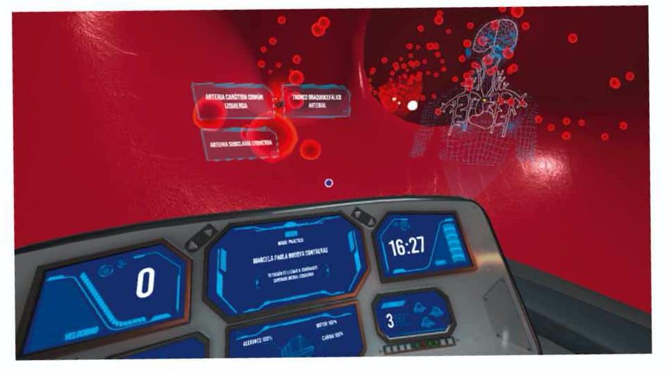 Lo siguiente fue analizar qué se quería enseñar y cómo aplicar el tema. De nuevo, una luz se encendió. La inspiración fueron películas de los años ochenta, noventa y anteriores, como Viaje Insólito (Innerspace, 1987) y Viaje Fantástico (Fantastic Voyage, 1966), en las que había personajes que se reducían y entraban al cuerpo. Ciencia ficción pura. De ahí surgió la idea de ‘inyectar’ al estudiante al primer ‘mundo’ del videojuego, específicamente a la arteria aorta para que comenzara la misión de llegar al sitio en donde estaba el tumor; tarea que hace referencia a un caso clínico asignado: un tumor en un cuadrante de la glándula mamaria.