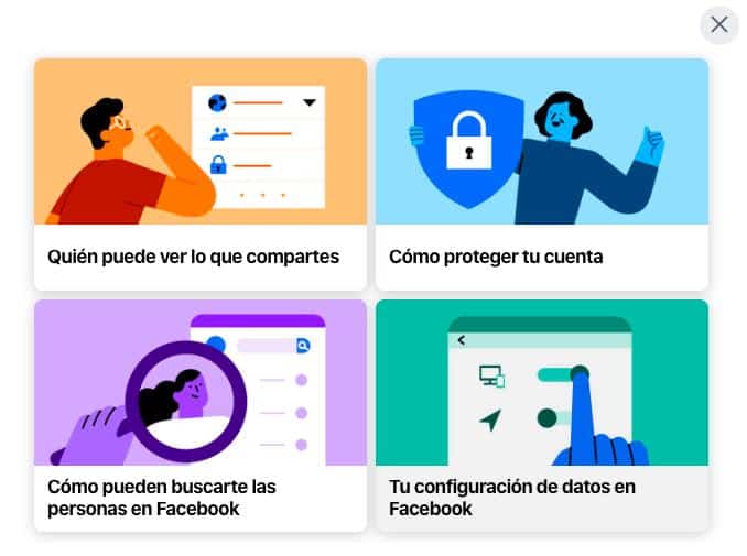 Cómo proteger mi cuenta: aquí se revisan aspectos básicos de privacidad como la contraseña y las notificaciones de seguridad (cómo le avisan al usuario si hay algún inicio de sesión desconocido). Facebook le sugerirá cambiar su contraseña en el caso de que esté usando una poco segura.