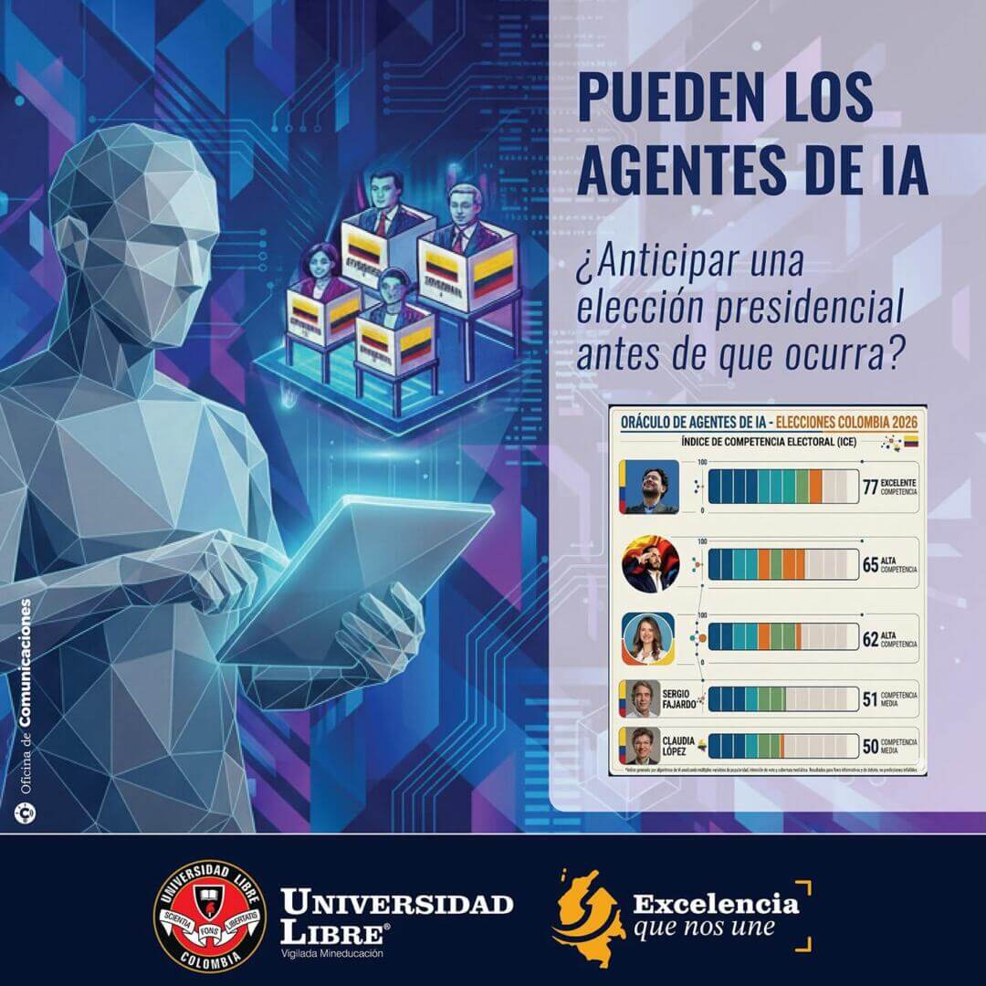 - Oráculo de Agentes IA (Universidad Libre de Bogotá): sistema experimental que emplea múltiples agentes de IA actualizados semanalmente para analizar escenarios, predicciones y perfiles de candidatos presidenciales.