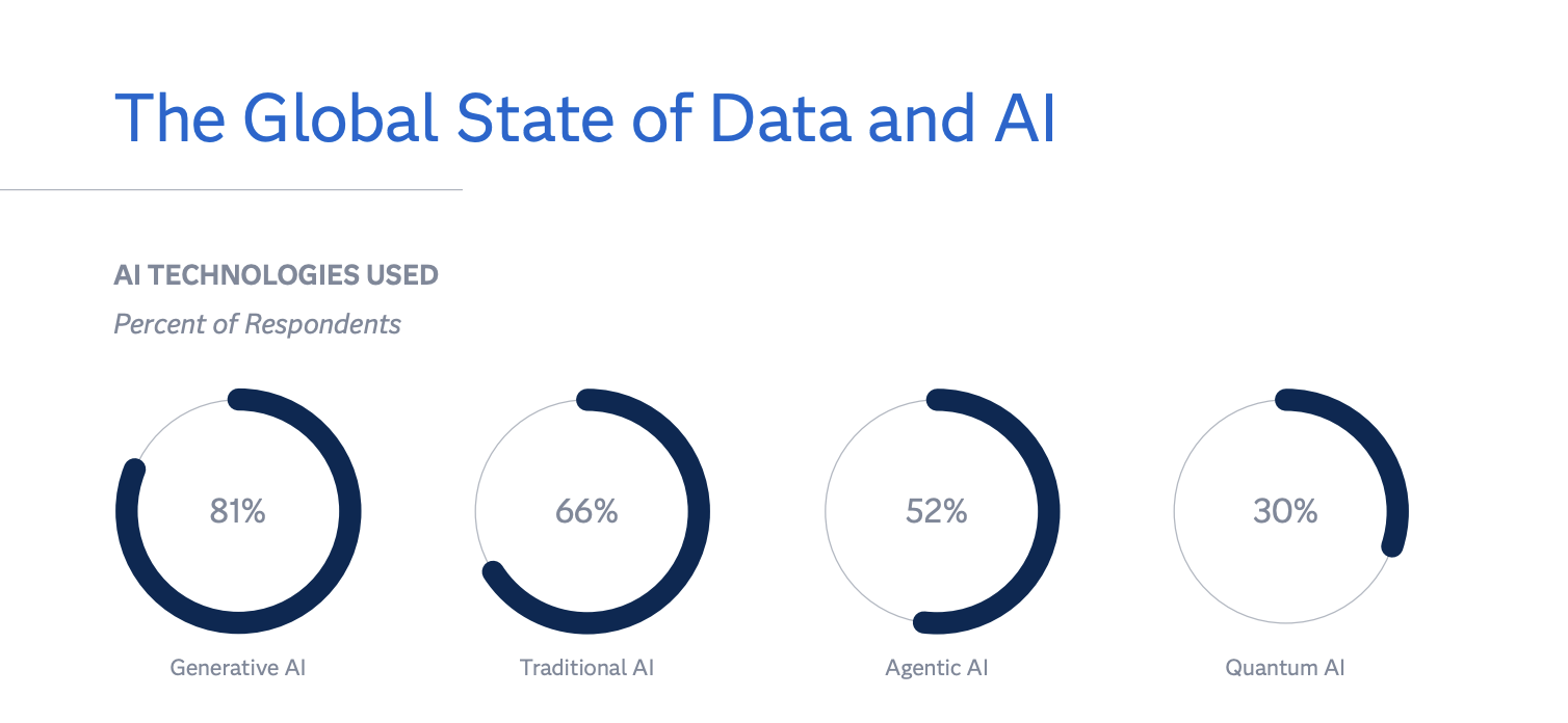 Hacia el futuro cercano, la conversación comienza a integrar la Inteligencia Artificial Cuántica (Quantum AI). Aunque su uso comercial es incipiente (30 %), su valor radica en procesar volúmenes masivos de datos que hoy resultan costosos o lentos para los algoritmos tradicionales.