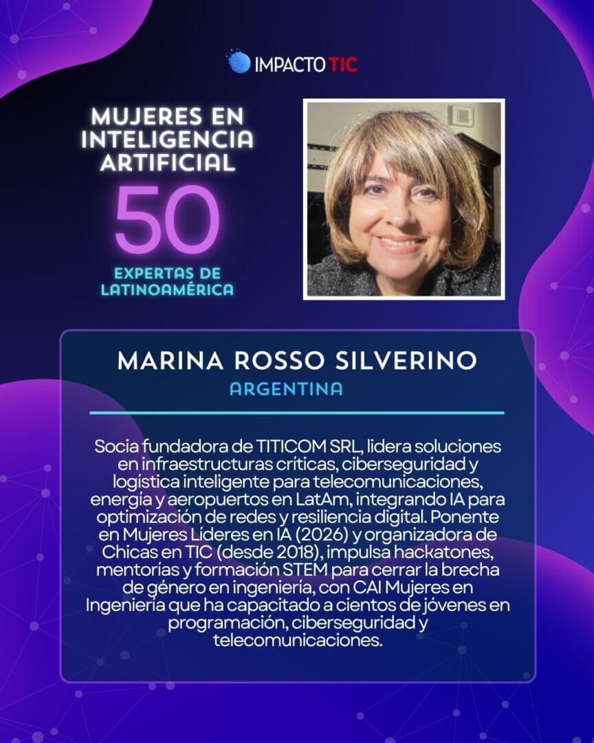 Socia fundadora de TITICOM SRL, lidera soluciones en infraestructuras críticas, ciberseguridad y logística inteligente para telecomunicaciones, energía y aeropuertos en LatAm, integrando IA para optimización de redes y resiliencia digital. Ponente en Mujeres Líderes en IA (2026) y organizadora de Chicas en TIC (desde 2018), impulsa hackatones, mentorías y formación STEM para cerrar la brecha de género en ingeniería, con CAI Mujeres en Ingeniería que ha capacitado a cientos de jóvenes en programación, ciberseguridad y telecomunicaciones.