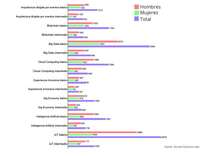 Finalmente, el último laboratorio no es presencial sino virtual, se trata de Bogotá Aprende TIC, la plataforma en la que se ofrecen 16 cursos básicos de tecnología, divididos en 8 temáticas: Big Data, Blockchain, Cloud Computing, Inteligencia Artificial, Internet de las Cosas, Experiencia Inmersiva y Big Economy. Cada uno de estos cursos tiene una duración de 30 horas (15 horas de trabajo en plataforma y 15 horas de trabajo autónomo).