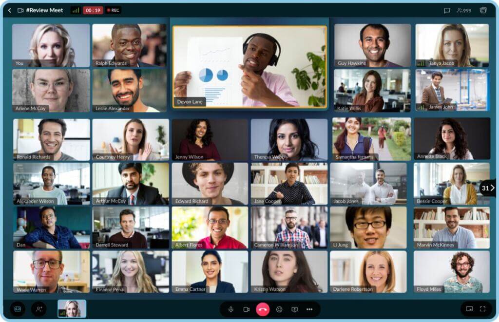 - Las llamadas en equipo se pueden mostrar en un formato de cuadrícula en el que todos los participantes se vean en recuadros independientes, aparte de la vista de stage, que muestra solo 7 participantes en la pantalla.