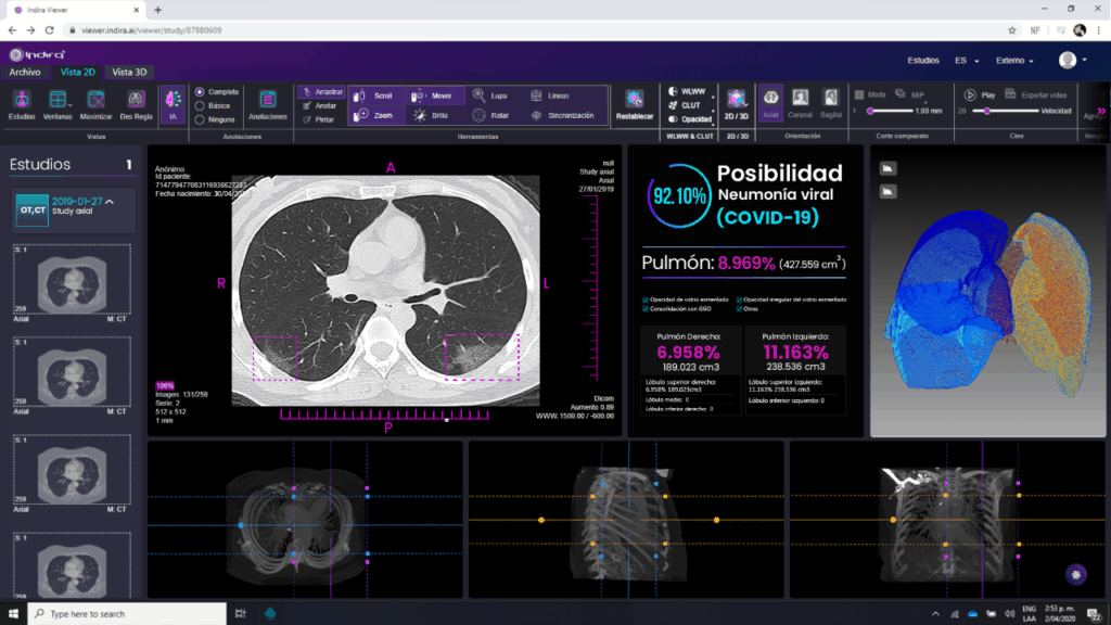 El programa en cuestión, desarrollado por Indigo, es Indira, con el que ya se han diagnosticado más de 300 casos de cáncer de pulmón y tiene un 99,3 % de confiabilidad.