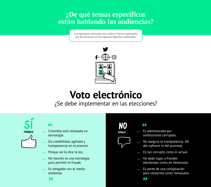 Pero no todos están en contra. Andrés Guzmán Caballero, abogado enfocado en tecnología, sí cree que “el voto más seguro es el electrónico, con constancia impresa y urna, y muy atrás quedan sus contrincantes: el voto virtual y el voto puramente físico que normalmente conocemos, pues no brindan garantías, son fácilmente manipulables y no son técnicamente confiables“.
