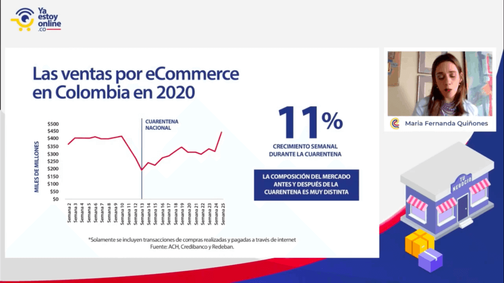 Y aunque pareciera que ahora todo se vende por Internet, lo cierto es que desde antes de la cuarentena las empresas colombianas ya estaban rezagadas en la adopción de nuevas tecnologías para comercializar sus productos, según compartió María Fernanda Quiñones, presidente ejecutiva de la Cámara Colombiana de Comercio Electrónico. La pandemia llegó a acelerar la tendencia de digitalización, porque permite continuar con las ventas (para los comercios) y es una opción de abastecimiento más segura (para los usuarios), en cuanto a salud.